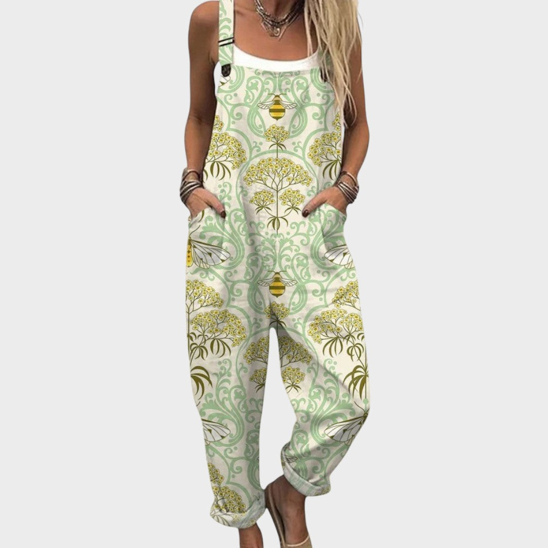 Този летен гащеризон съчетава комфорт и уникален дизайн в парче облекло, което ще обожавате да носите всеки ден. С широк силует, практични джобове и игриви детайли, той е перфектен за разходки, излети или релаксиращи моменти у дома.