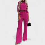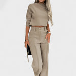 Този ансамбъл е перфектният избор за тези, които търсят елегантен, съвременен вид с нотка на стил. Късият топ, съчетан с панталон с висока талия, създава изтънчен силует, идеален както за ежедневни събития, така и за смела работна визия.