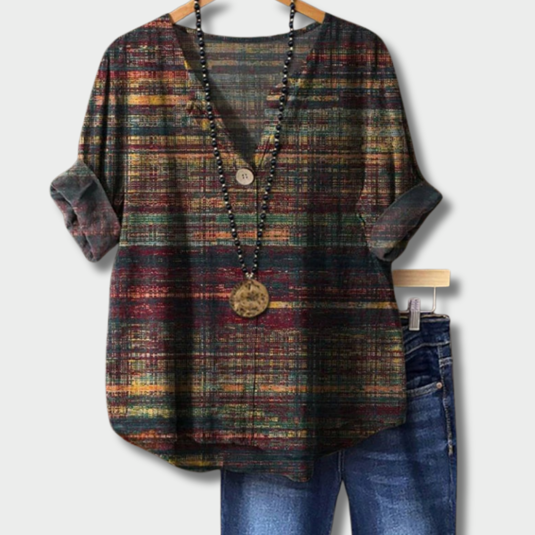 Блузата Мария съчетава винтидж пачуърк мотиви с комфортен свободен силует. Лен-памук миксът гарантира лекота и дишаща структура, а топлите нюанси и бохемски акценти придават артистичен характер на всяка визия. Перфектна за есенни разходки, кафе с приятели или релаксиран уютни дни.