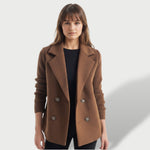 Сакото Amora съчетава класическа кройка с модерен комфорт. Неговият структурен дизайн с двойно закопчаване и ръкави с райе създава универсален и изискан артикул. Перфектно за работа или с дънки за по-ежедневен вид, добавя шикозен акцент без усилие за всякакъв повод.