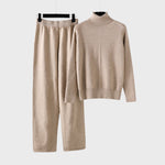 • Плетени панталони: Тези панталони се отличават с широк, тесен крачол и еластична талия, осигуряващи максимален комфорт, без да ограничават движенията. Тази модерна кройка перфектно балансира силуета, допълвайки обема на пуловера.