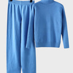 Насладете се на шикозен комфорт с този комплект от две части. Този висококачествен комплект включва стилен пуловер с поло яка и широки, ежедневни ръкави, подчертани с фини странични детайли, съчетан с изтънчен, широк панталон. Изработен от мека, висококачествена материя, той е идеален за релакс у дома или за излизане в ежедневен стил.