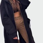 Дълго палто с качулка, което комбинира елегантност и практичност. Неговото удобно прилягане го прави идеално за ежедневна употреба, докато неговият вечен дизайн добавя стил на всяка облекло комбинация. Парче, което предоставя топлина и изтънченост през студените дни.