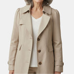 Мекo оформен дъждобран, създаден за комфорт и увереност. Гладката външна част помага да се предпазите от лек дъжд и хладни бризове, докато нежното прилягане подчертава фигурата без да е стегнато. Лесен за носене върху трикотаж или рокли, предлага целогодишна употреба с проста елегантност. Надежден дъждобран, който ви покрива, независимо какво носи денят.