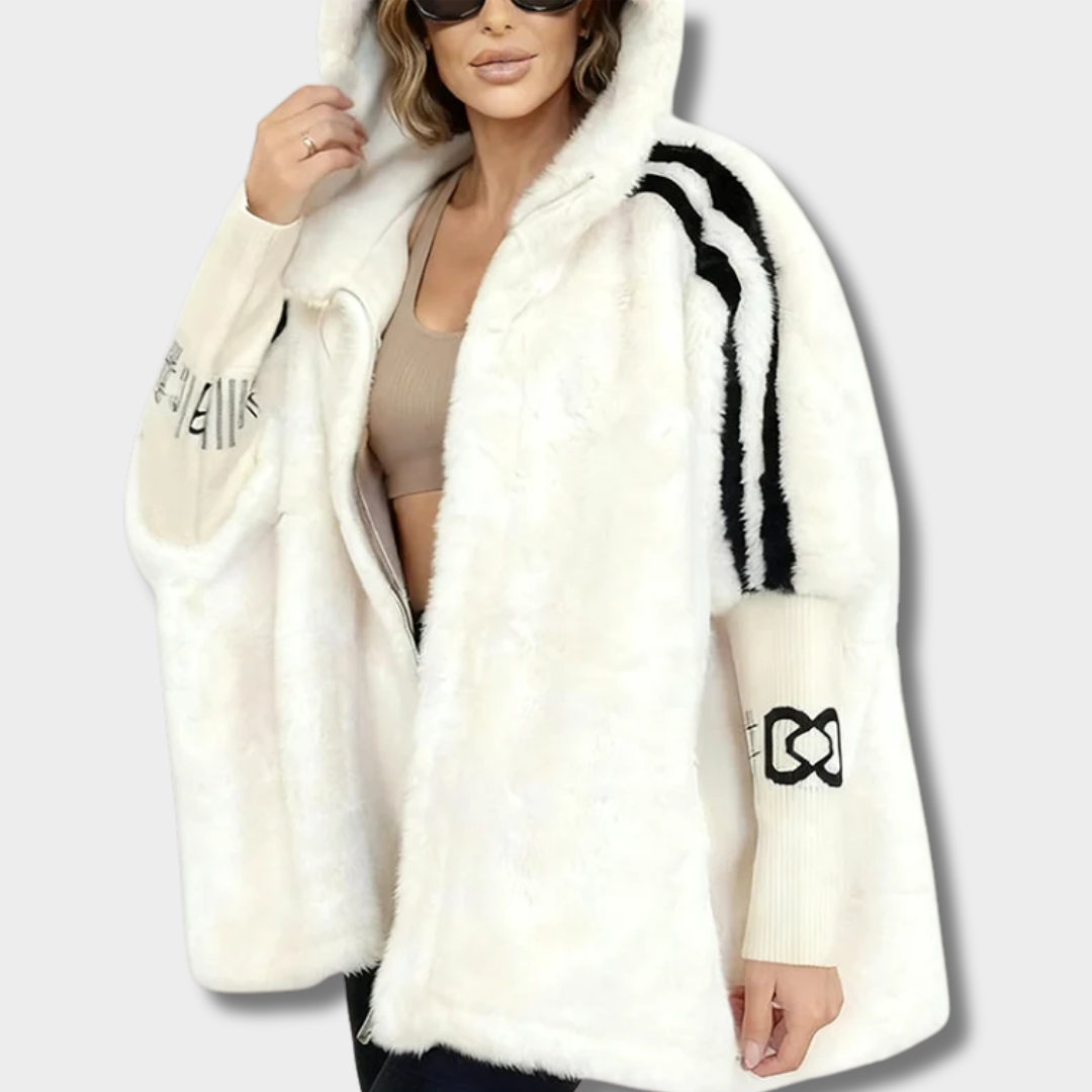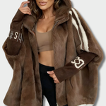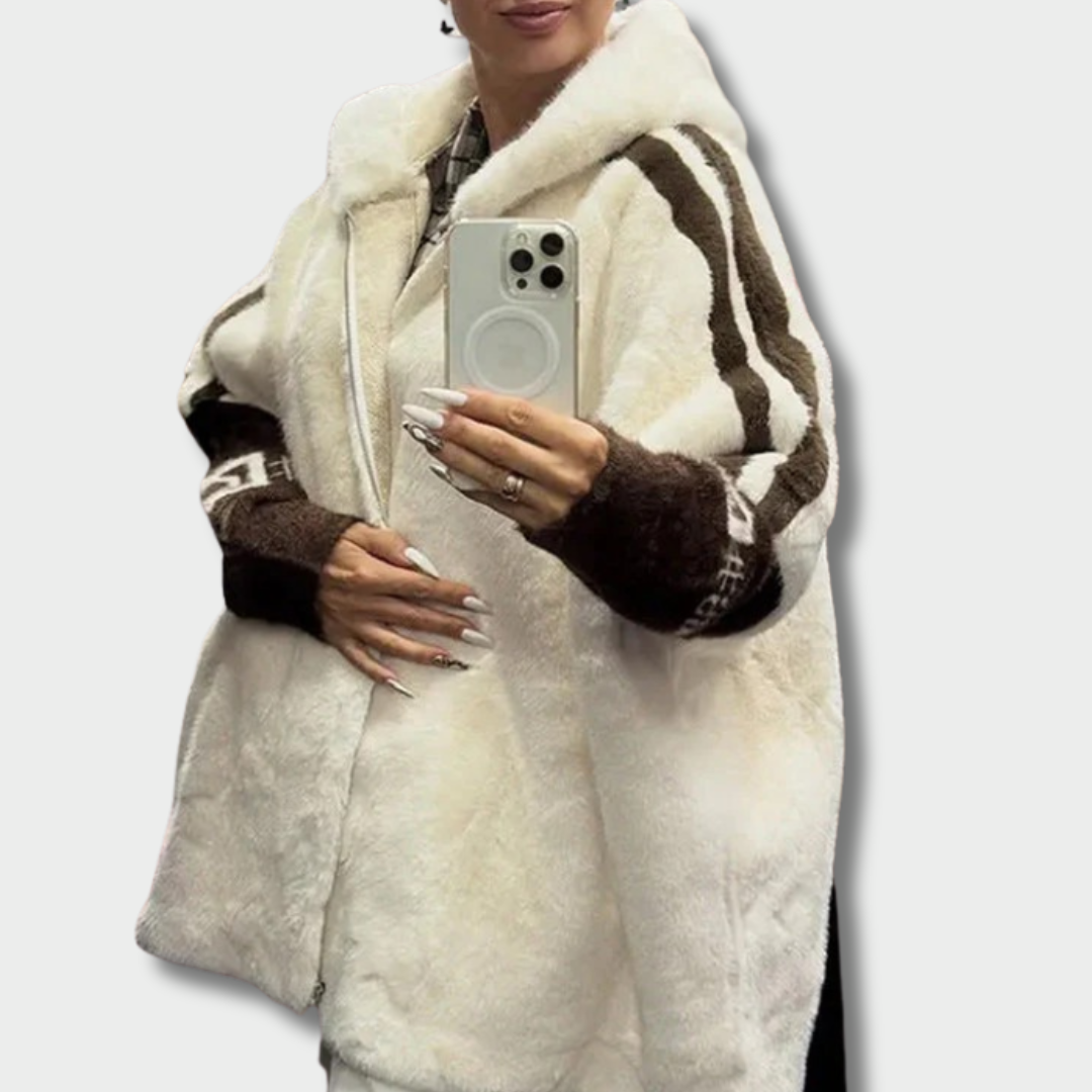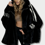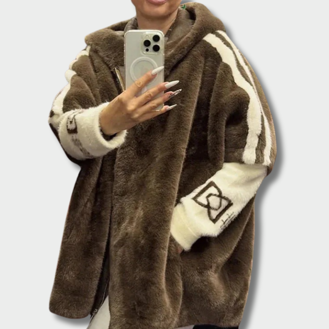 Николина – Плюшен дамски пуловер с качулка