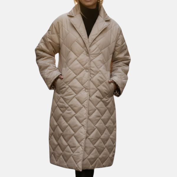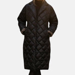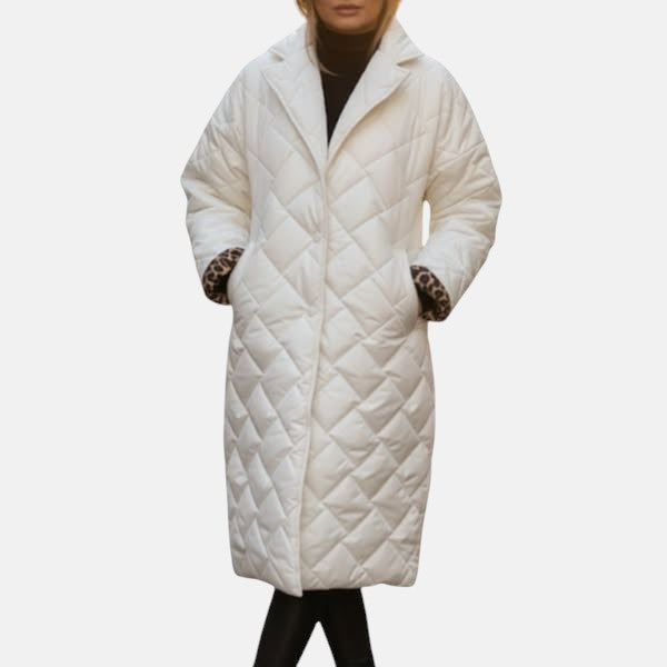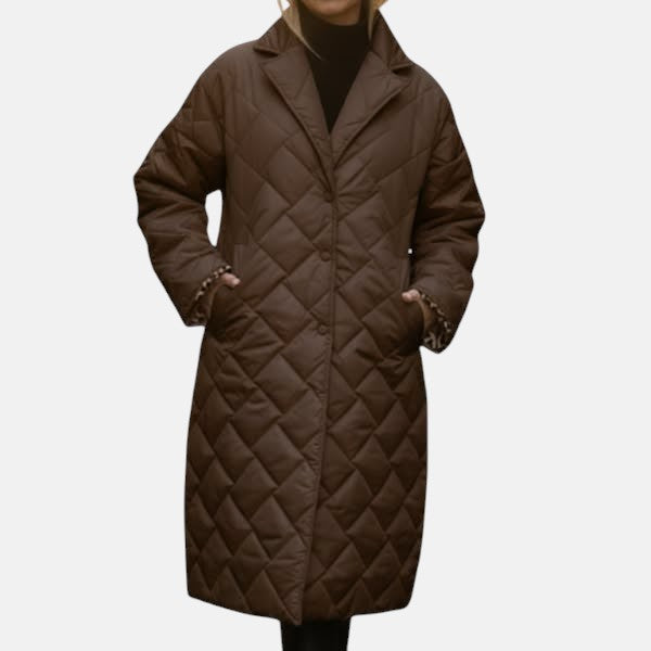 Kestä kylmä sää tyylillä. Tämä pitkä toppatakki tarjoaa täydellisen tasapainon lämpimyyden ja modernin eleganssin välillä. Tikattu pinta luo hienostuneen ilmeen, ja eläinkuosinen vuori antaa rohkean ja ainutlaatuisen lisäsävyn. Täydellinen kylmiin päiviin – monikäyttöinen takki, joka sopii täydellisesti housujen, saappaiden ja huivien kanssa, pitäen olosi mukavana ja tyylisi moitteettomana kaikissa tilanteissa.