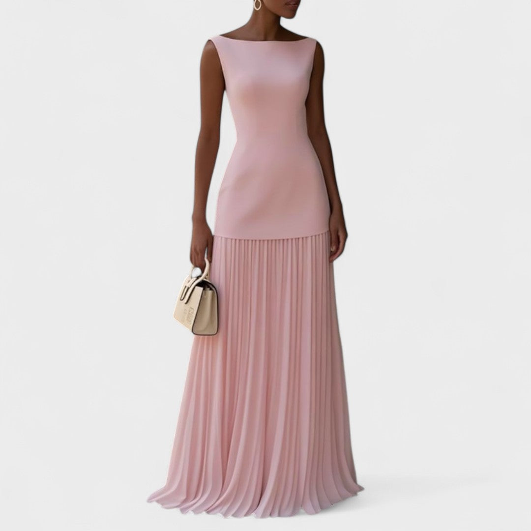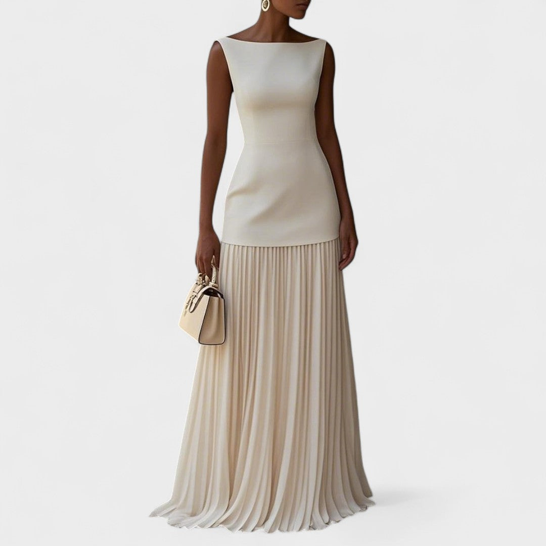 Тази луксозна рокля съчетава изискан дизайн с безупречна силуета, която подчертава женствеността и грацията. Горната част е изтънчено следваща линията на тялото, докато долната част с разкошни набръчквания създава усещане за лекота и плавно движение. Идеална е за гала събития, тържествени вечери или специални поводи, когато искате да блеснете без компромиси.