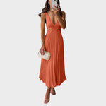 Елегантност на плисираната рокля с V-образно деколте