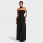 Тясната горна част подчертава талията и деколтето, създавайки елегантна и мощна линия.