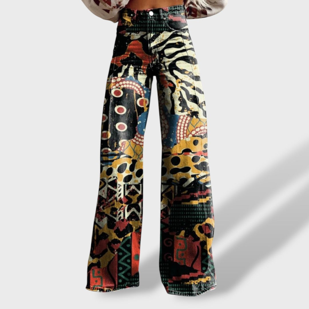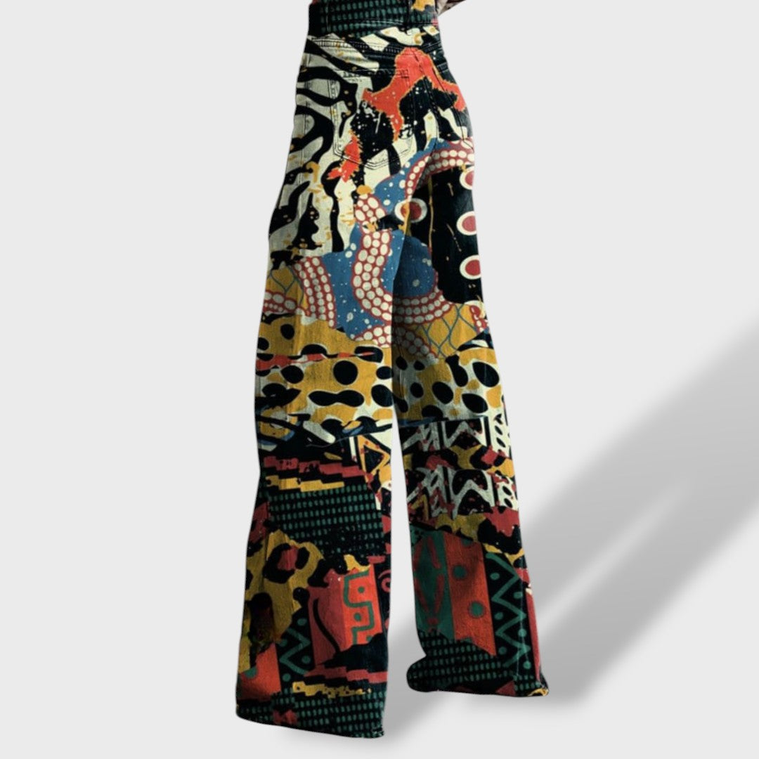 Панталоните Бохо Винтидж Лусия™ съчетават комфорт, стил и практичност в универсален и вечен дизайн. С широки крака, висока талия и цветни бохемски шарки, тези панталони са перфектни за всякакъв повод, от неформален ден до фестивал или летен, небрежен тоалет.