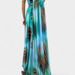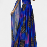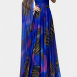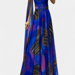 Романтична и сложна, роклята Нивес внася скулптурен и женствен дух благодарение на изреза с едно рамо и драпирания ръкав. Деликатната цветна апликация повдига дизайна, докато макси силуетът се движи плавно с грация, създавайки незабравимо присъствие на всяко събитие. Изработена от мек и елегантен материал, балансира удобството с изискана бляскавост.