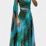 Дълга рокля Нивес с едно рамо и цветен детайл