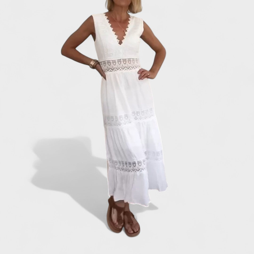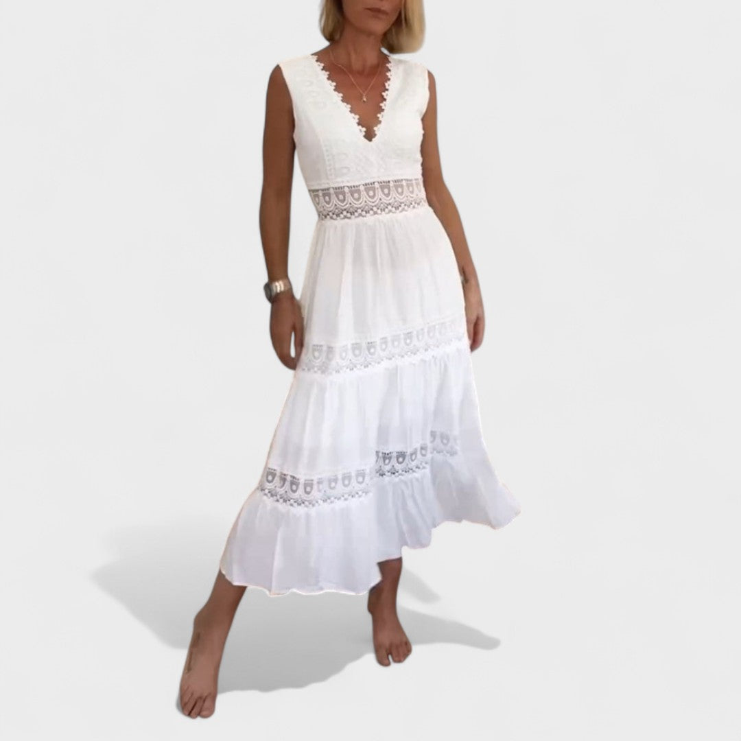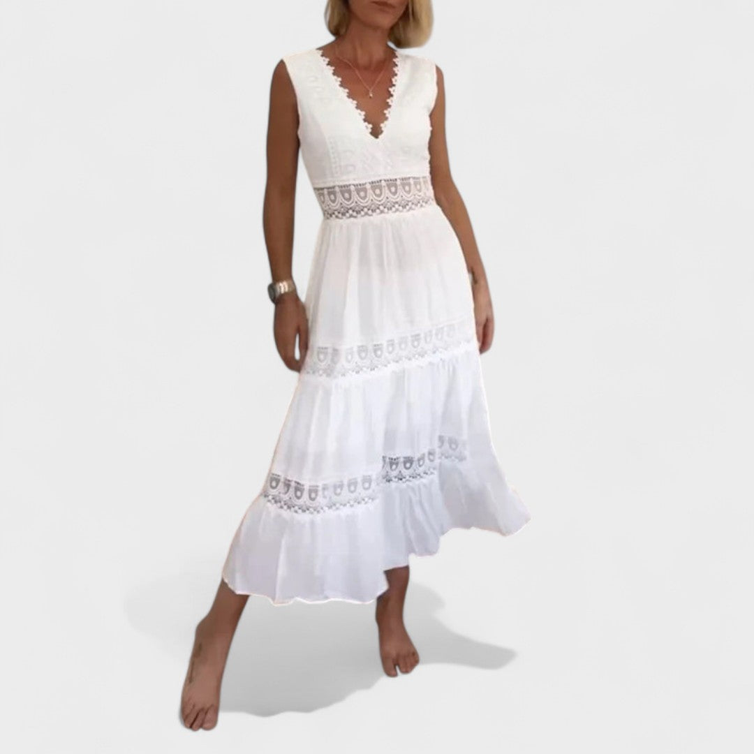 Елена - Елегантна Чипкова Рокля с V-Изрез