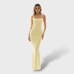 Тази макси рокля с прилепнала кройка подчертава силуета с елегантен и безгъб дизайн, перфектен за нощни събития. Нейната мека и лека материя предлага комфорт и луксозно завършване, докато безръкавният кройка осигурява свобода на движение. Идеална за вечери, партита и специални тържества.