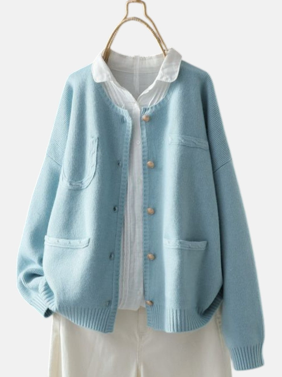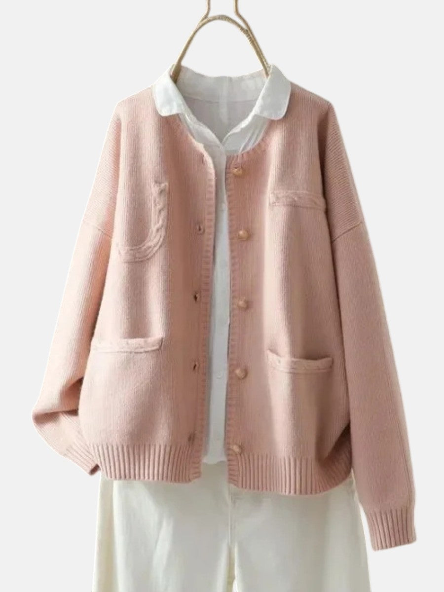 Елегантният кардиган Марчела е перфектният избор за жени, които ценят нежната елегантност в ежедневното облекло. С мек розов нюанс и разкроен силует, той съчетава чар и практичност, идеален за наслояване над блузи или добавяне на топлина към неформални облекла.