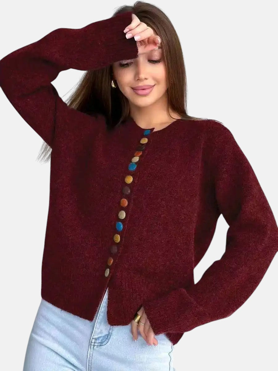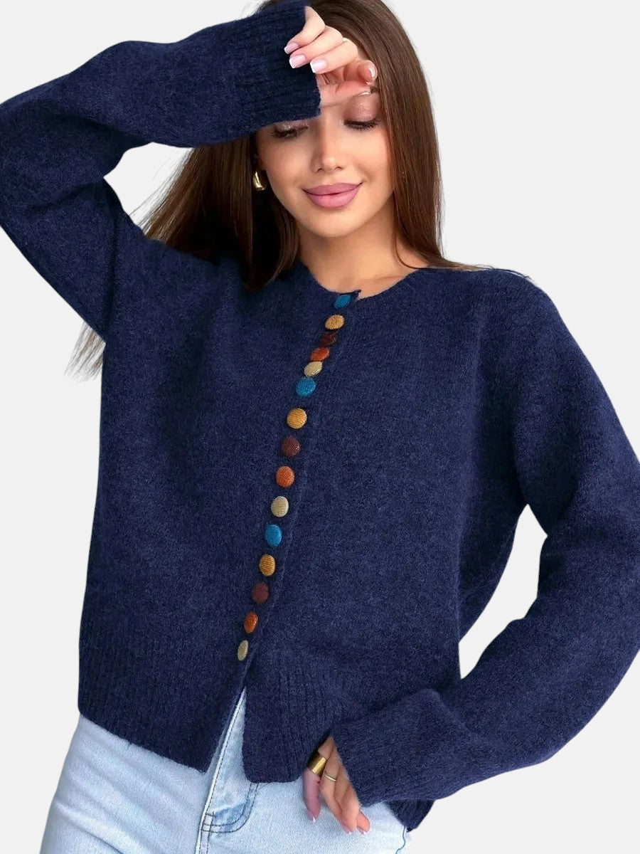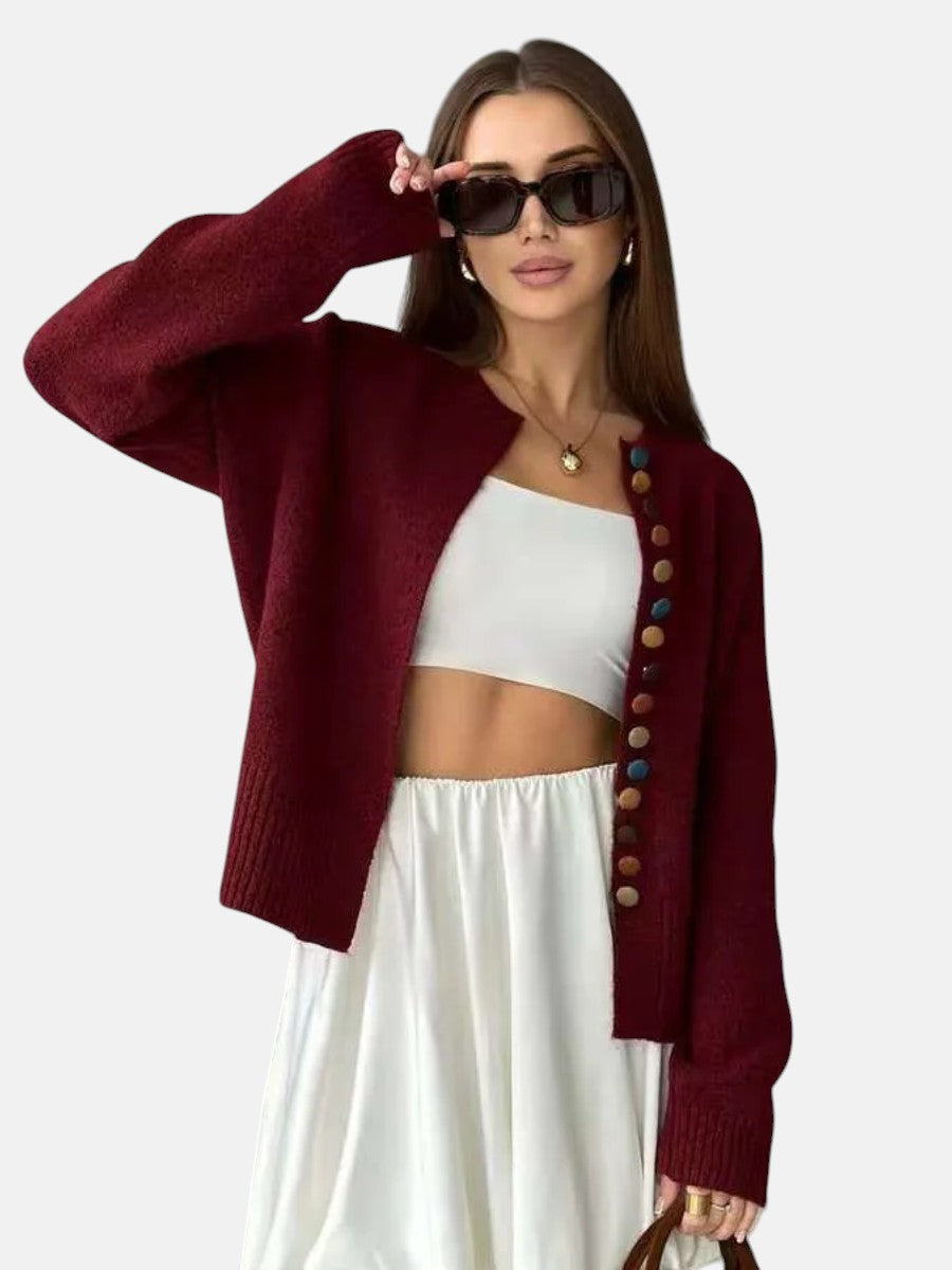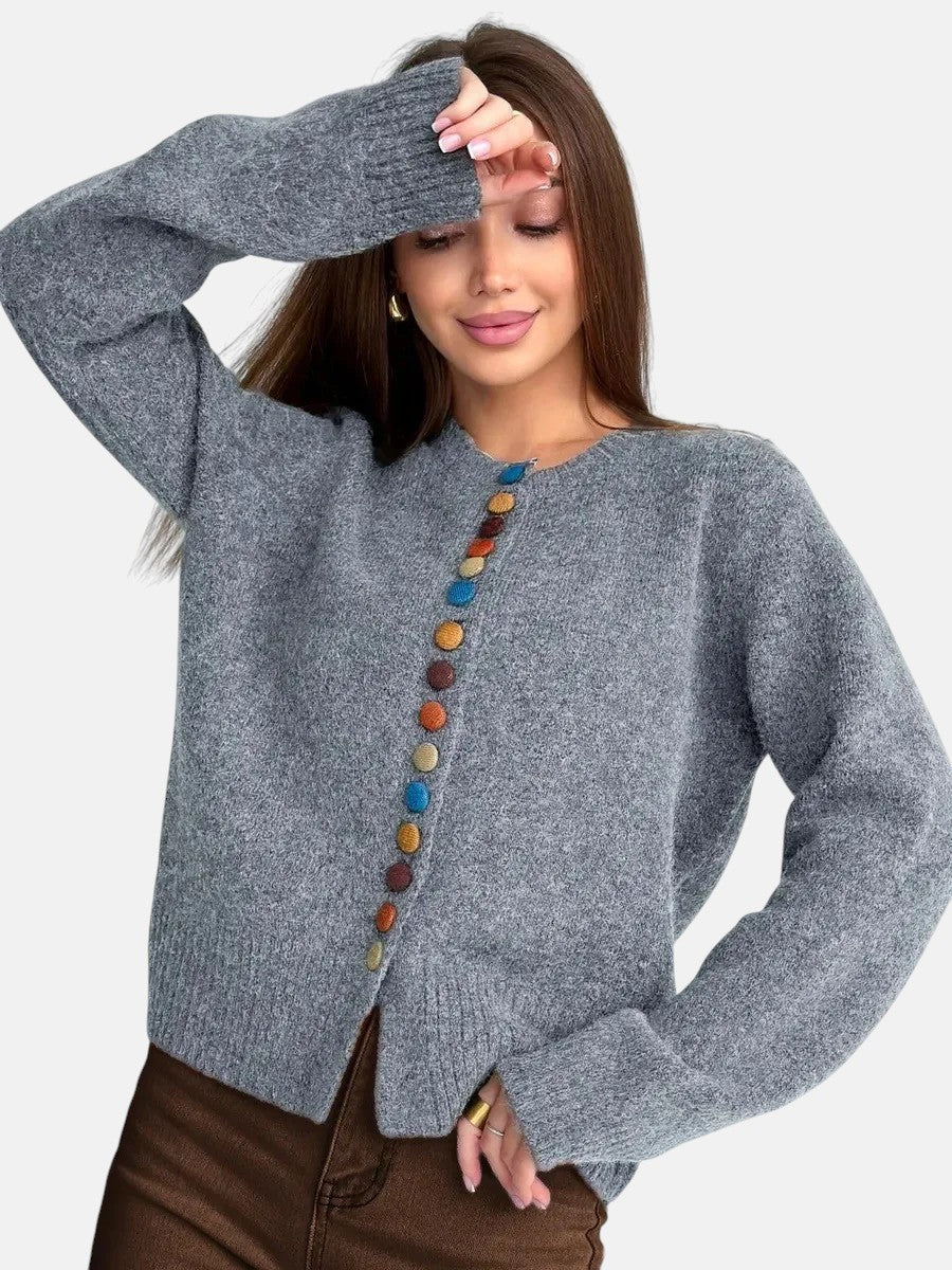 • Игриви акценти с бутони: Цветни бутони добавят характер и чар на класическия кардиган.