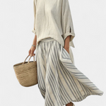 Цялостен комплект Daisy с Oversize тениска и midi пола с райета от лен и бамбук за елегантен и удобен стил