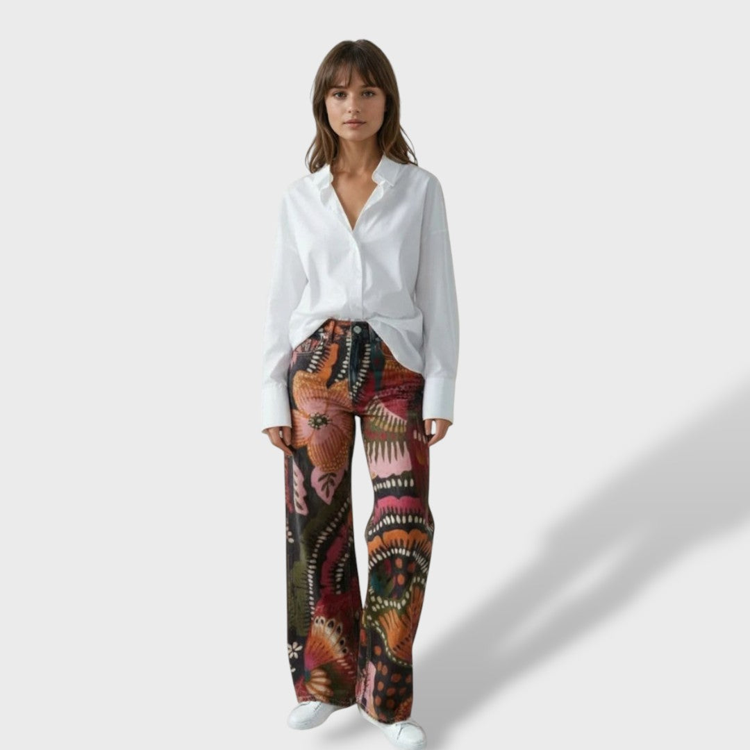 Панталоните Chiara™ предлагат перфектната комбинация между комфорт и винтидж дизайн. С разкроен силует, висока талия и широки крака, те подчертават фигурата, без да се отказват от удобството. Леките и дишащи материи са идеални за ежедневието, докато бохемските десени добавят забавен и пълен с личност акцент.
