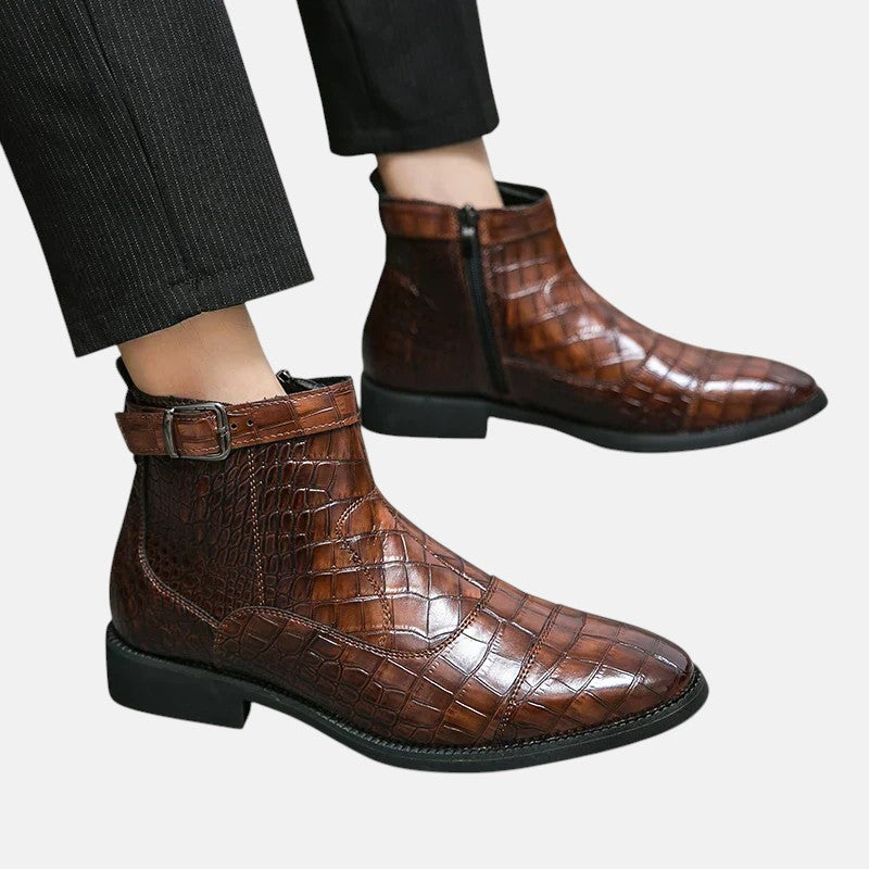 Открийте кожените обувки Барон с катарама, перфектното съчетание на луксозно майсторство и изтънчен дизайн. Създадени да устоят на времето и да се открояват, те са идеален избор за мъже, които търсят доза елегантност във всяка стъпка.