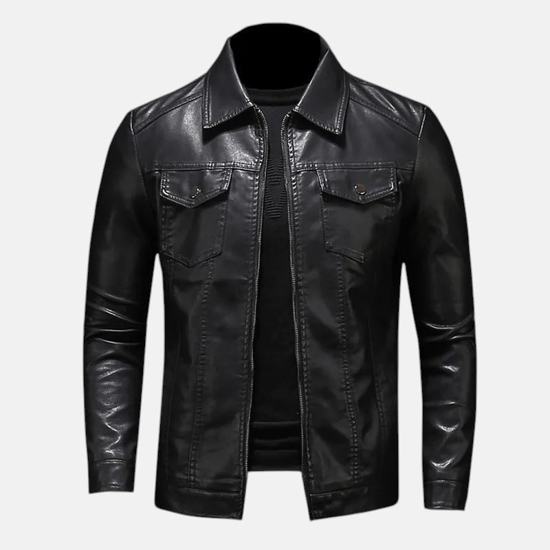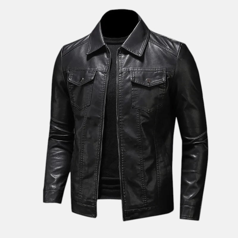 Съчетавайте елегантност с небрежност с коженото яке Лорънс – задължителен артикул за уверения и вечен стил.