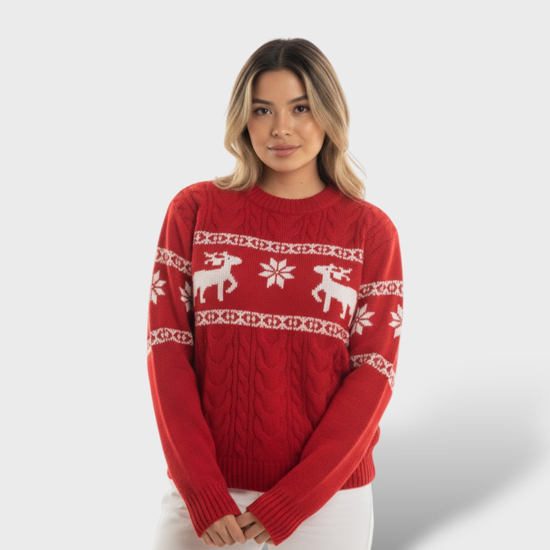 Коледният пуловер от кашмир с елен улавя същността на сезона с топъл, модерен и очарователен дизайн. Неговата мека текстура и висококачествена изработка предлагат обгръщаща усещане, перфектно за наслаждаване на празниците с комфорт и елегантност. Идеален за семейни събирания, специални вечери или моменти на релакс пред камината.