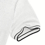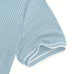 Повърхността има редовен вертикален райетен модел, от раменете до подгъва. Този детайл подчертава фигурата, без да утежнява силуета. Той също така помага за запазване на формата на полото през целия ден.