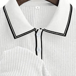 С средна дължина закопчалка с три копчета, това поло ви позволява да регулирате отвореността според вашите желания. Отворено за повече свежест или затворено за по-изискан вид, с бяла подплата, която добавя чист и елегантен завършек.