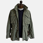Разширете гардероба си с тази военна яке с качулка, проектирана да предлага издръжлив и удобен външен вид. Предният цип с копчета и множество джобове гарантира практична и гъвкава пасформа. Идеално за дейности на открито или неформални поводи.