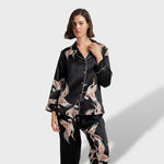 Комплектът Camila™ е проектиран с мека и лека материя, идеална за комфорт по време на почивка. С класически кантове и деликатни шарки, тази пижама съчетава удобство и стил. Дългите й ръкави и панталон с разкроен силует осигуряват свобода на движение и елегантност във всеки момент на релакс.