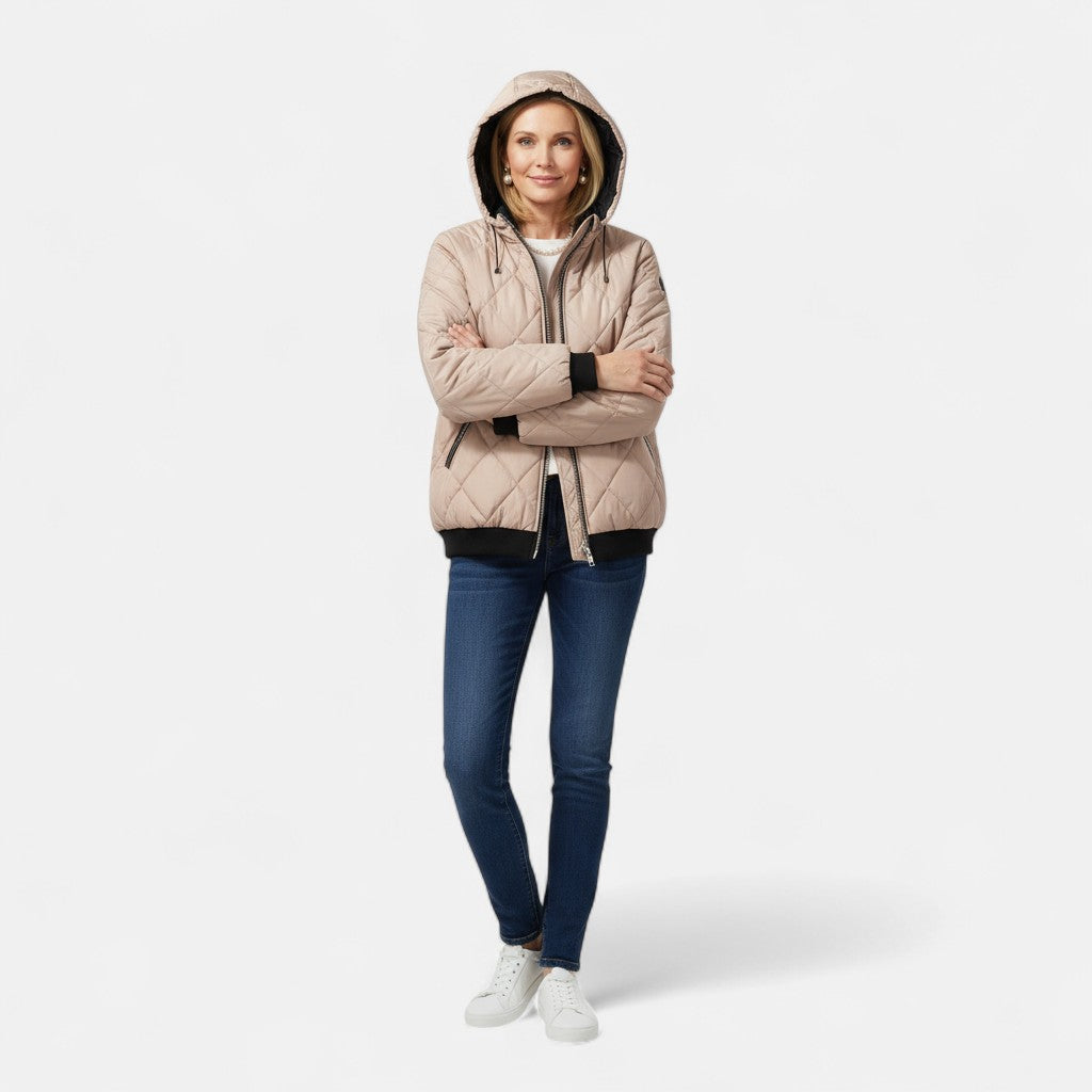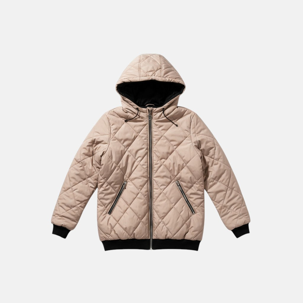 Това модерно подплатено яке в нежно розов нюанс съчетава елегантност и практичност. С висока яка, стилна предна цип-закопчалка и функционални джобове, то е перфектният избор за студените дни. Удобната кройка и модерният дизайн го правят идеално за ежедневието или разходки през зимата. Бъдете топли и стилни всеки ден!