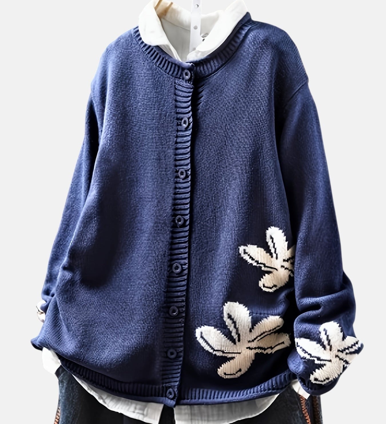 Евелин - Коледен пуловер с борова печат и червени плодчета