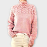 Женски плетен пуловер комбинира вечна елегантност с максимален комфорт. Структурният плетен дизайн го прави наистина впечатляващ – идеален за ежедневието, офиса или релаксиращи моменти. Удобен висок як и дълги ръкави осигуряват приятна топлина, докато свободният крой позволява свобода на движението.