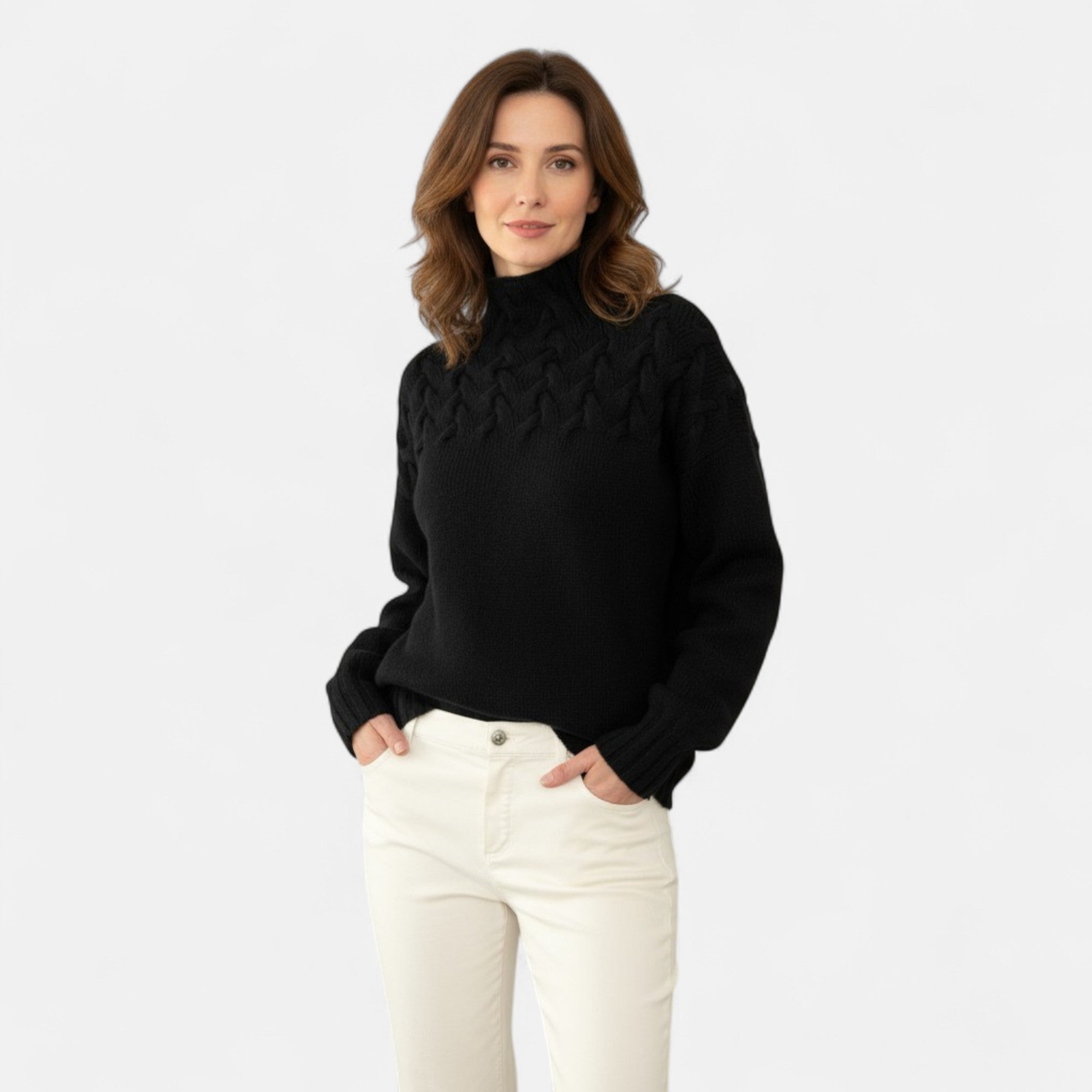 Ева - Женски пуловер с плетени детайли