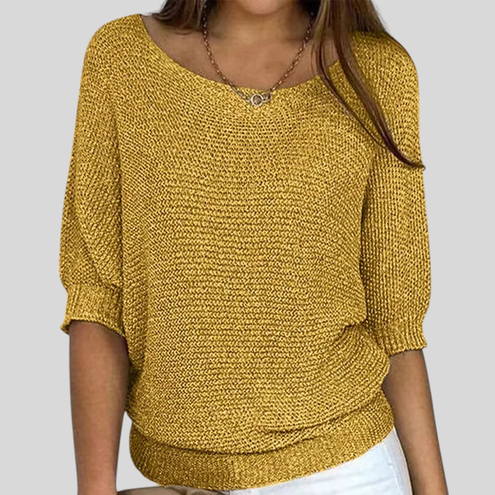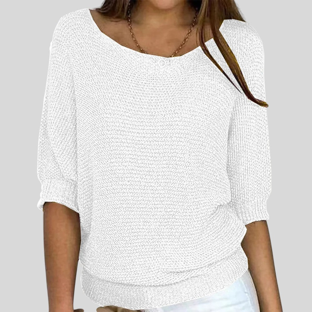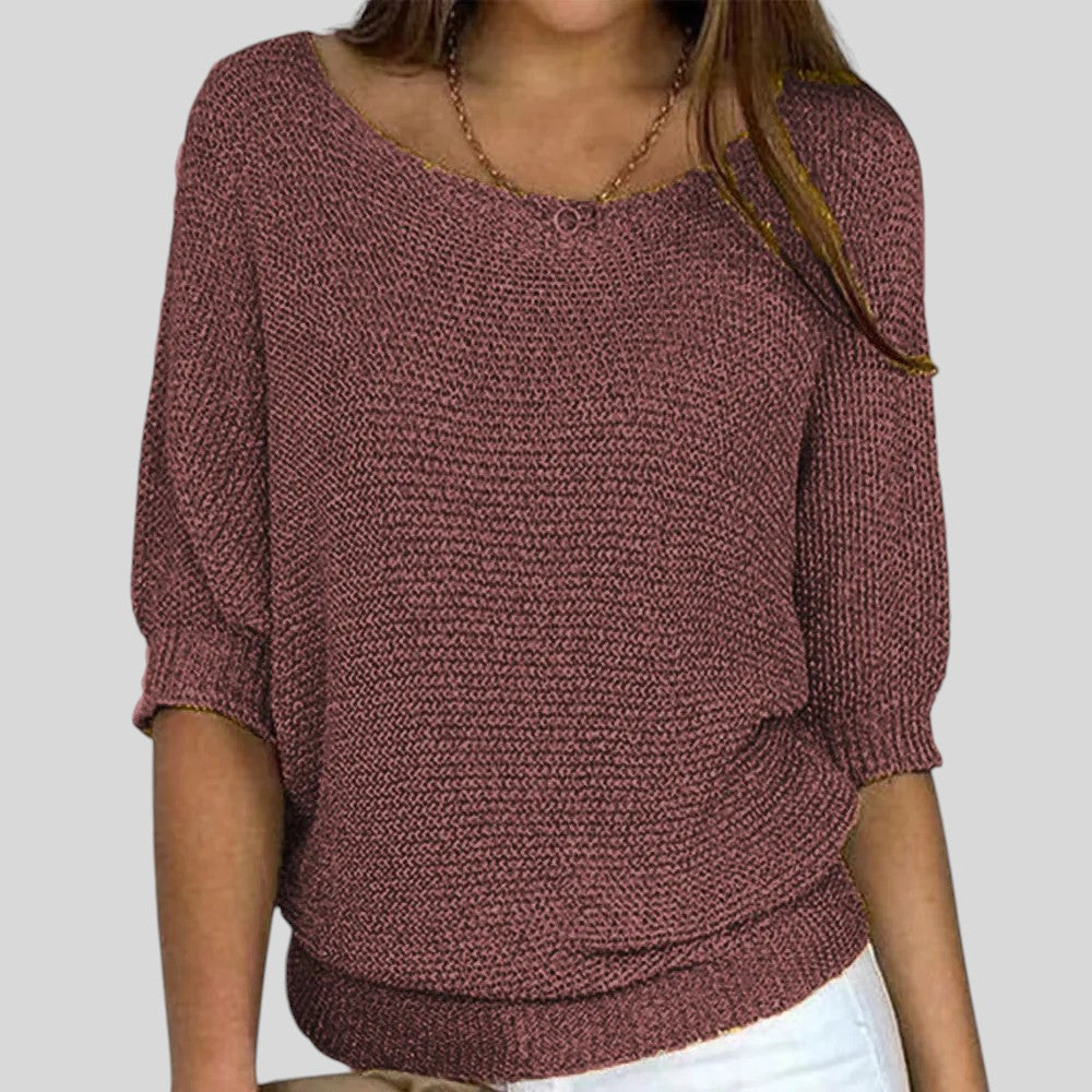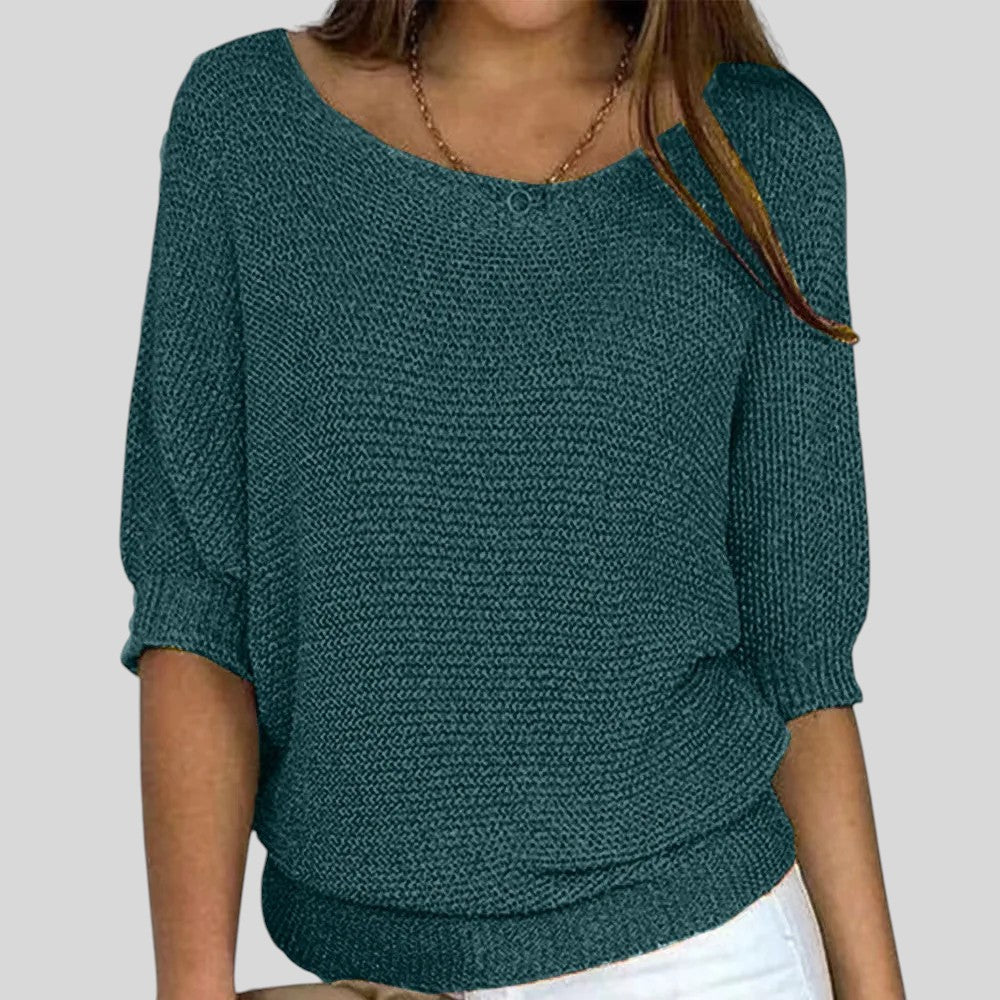 Biliana™ - Ежедневен пуловер с кръгло деколте и ръкави три четвърти