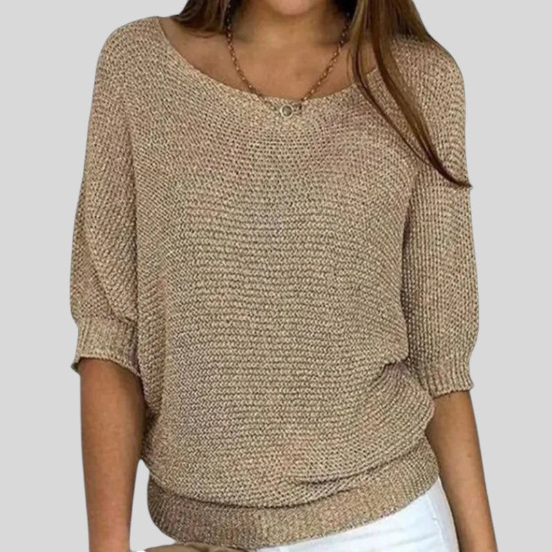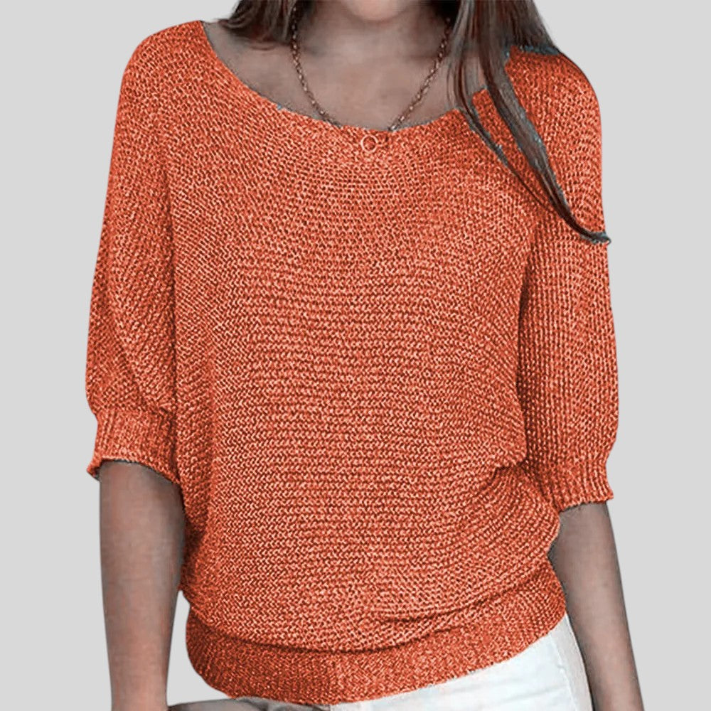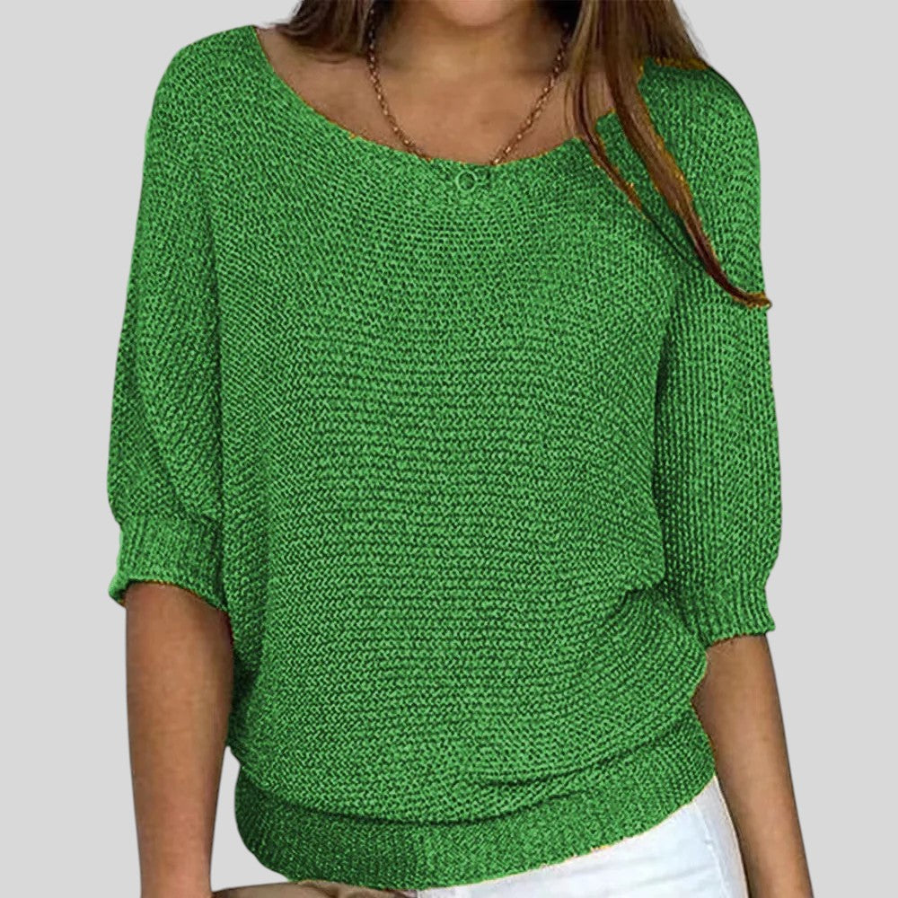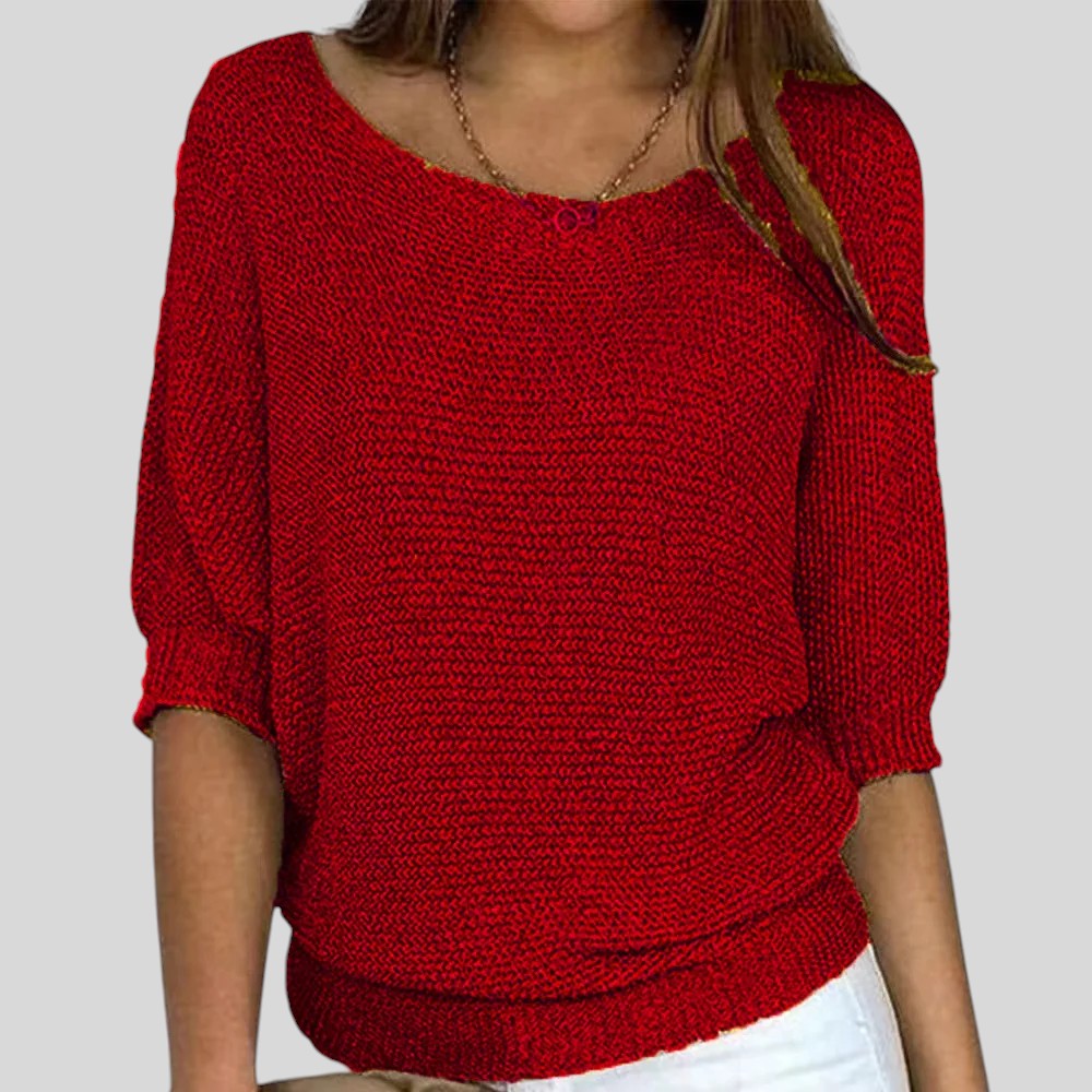 Biliana™ - Ежедневен пуловер с кръгло деколте и ръкави три четвърти
