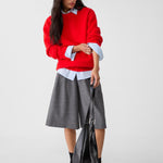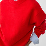 Направете стилно изявление с този красив червен пуловер. Интензивният червен цвят излъчва топлина и елегантност, идеален за настоящия сезон. Благодарение на класическото кръгло деколте и непреходната кройка, той съчетава комфорт с нотка лукс.