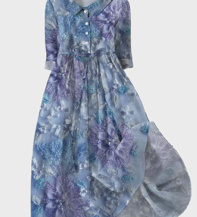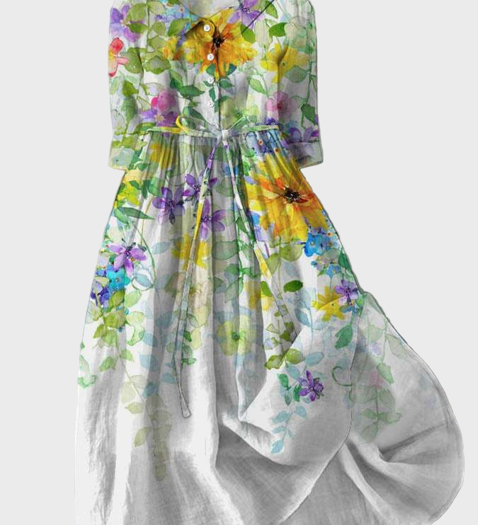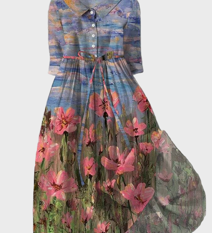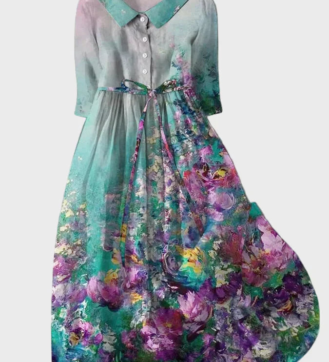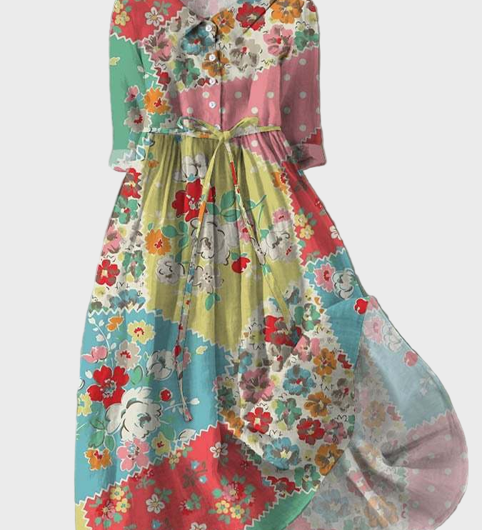 Многоцветна Цветна Рокля в Пачуърк Стил