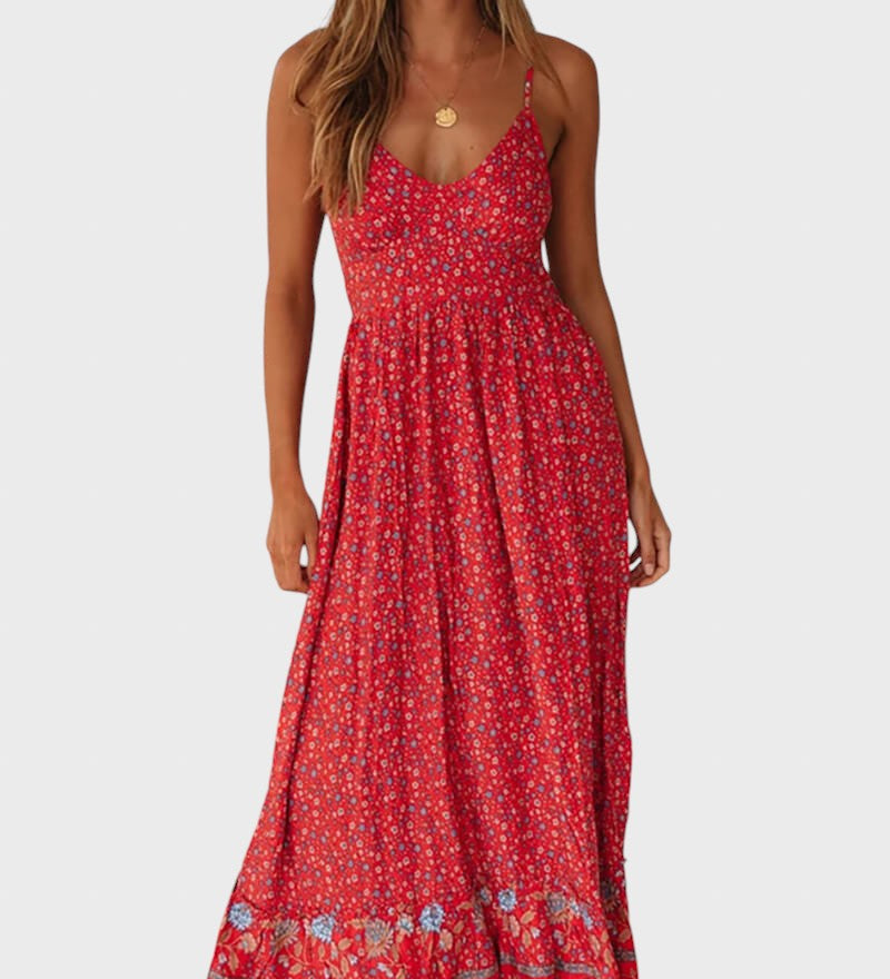 Kiriaki™ - Макси рокля на цветя с тънки презрамки