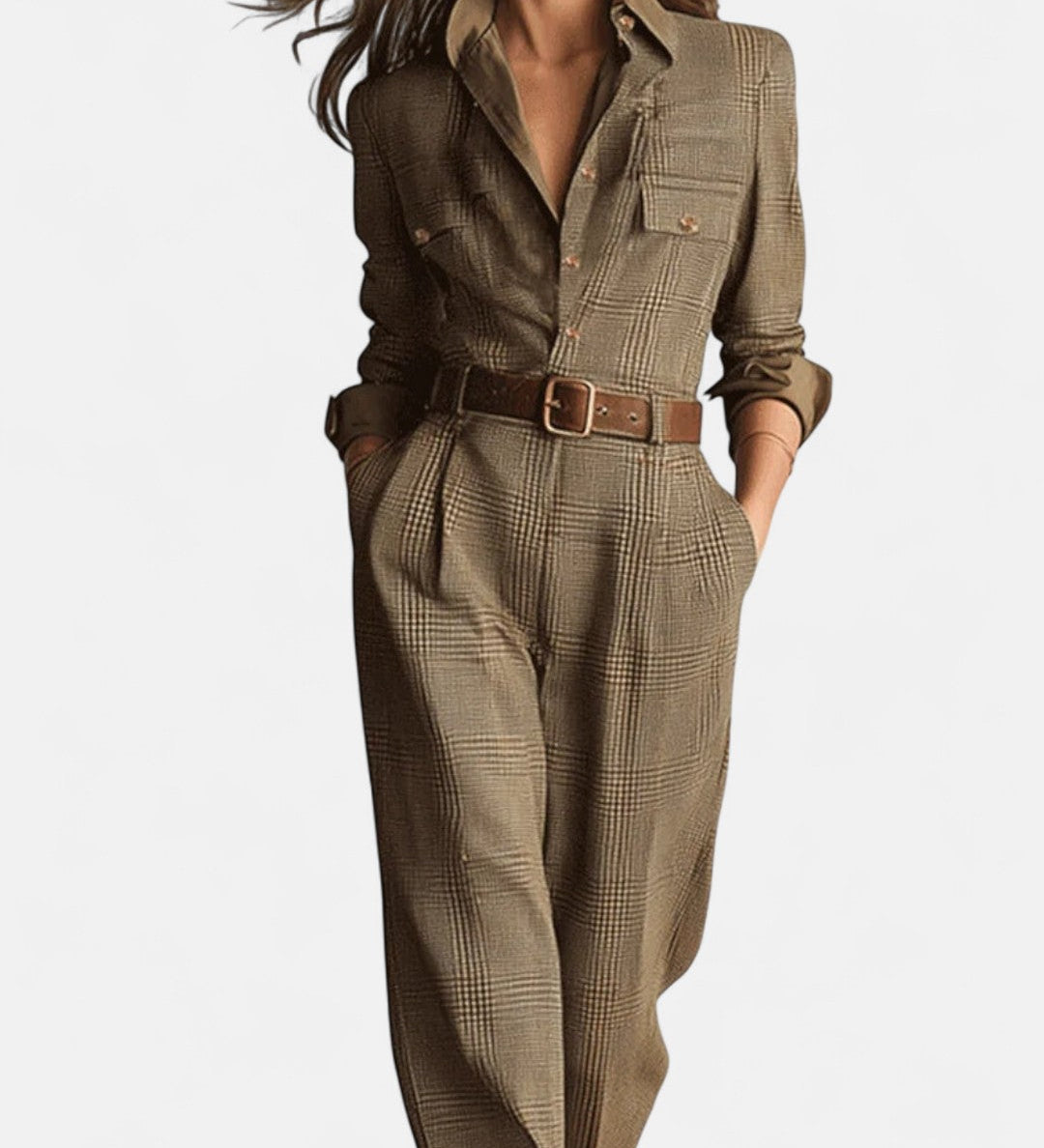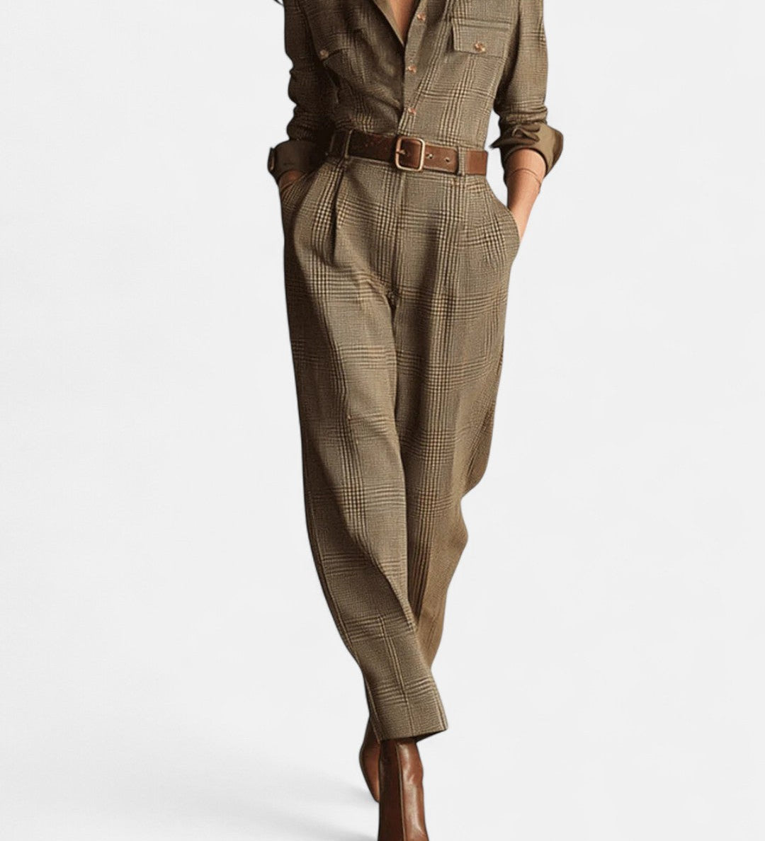 Барбара - Изискан комбинезон с текстура от твид и каре