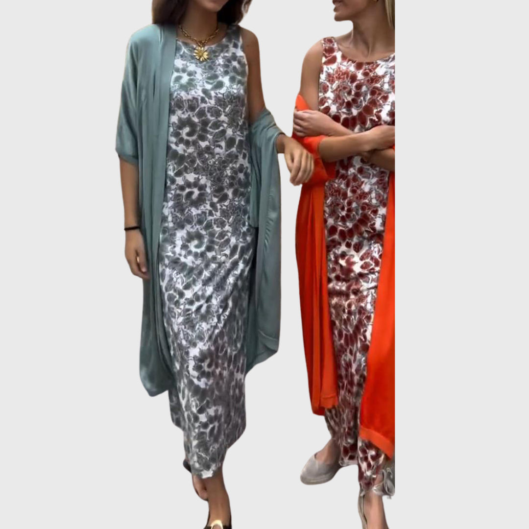 Тази рокля излъчва изтънченост и женственост. Летящият крой и удобният материал я правят перфектен избор за топлите дни, докато модерният десен добавя щрих на лукс и оригиналност. Идеална е за дневни разходки, вечерни излизания или специални поводи, когато искате да изглеждате елегантно без усилие.