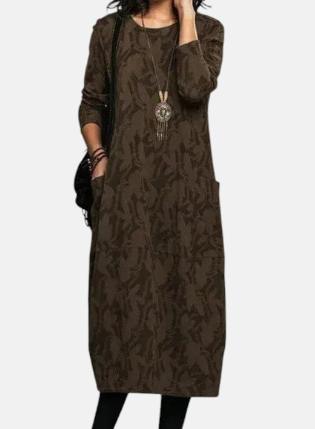 Тази елегантна рокля съчетава непринуден стил с артистично излъчване. Свободната кройка и изразителният десен я правят идеална както за ежедневието, така и за специални поводи. Съчетава се лесно с бижута и аксесоари, като придава завършен вид на визията ви. С джобовете си и меката материя, тя е не само стилна, но и практична.