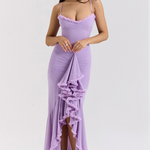 Впечатляваща и женствена рокля с прилягащ силует, която оформя тялото и подчертава силуета. Детайлите с волани на деколтето и полата внасят дъх на романтика и елегантност. Идеална за вечерни излизания и специални поводи, когато искате да бъдете в центъра на вниманието.