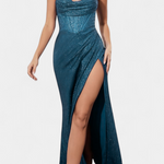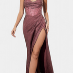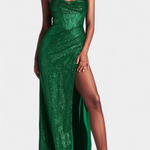 Дръзка, драматична и елегантна, роклята Инес е парче, проектирано да блести на всяко специално събитие. Нейната тясна силуета на русалка, корсетният горен част и високият разрез на бедрото създават впечатляващ вид, който подчертава изтънчеността. Спагети презрамките и блестящият завършек допълват модерната и Glamour естетика.
