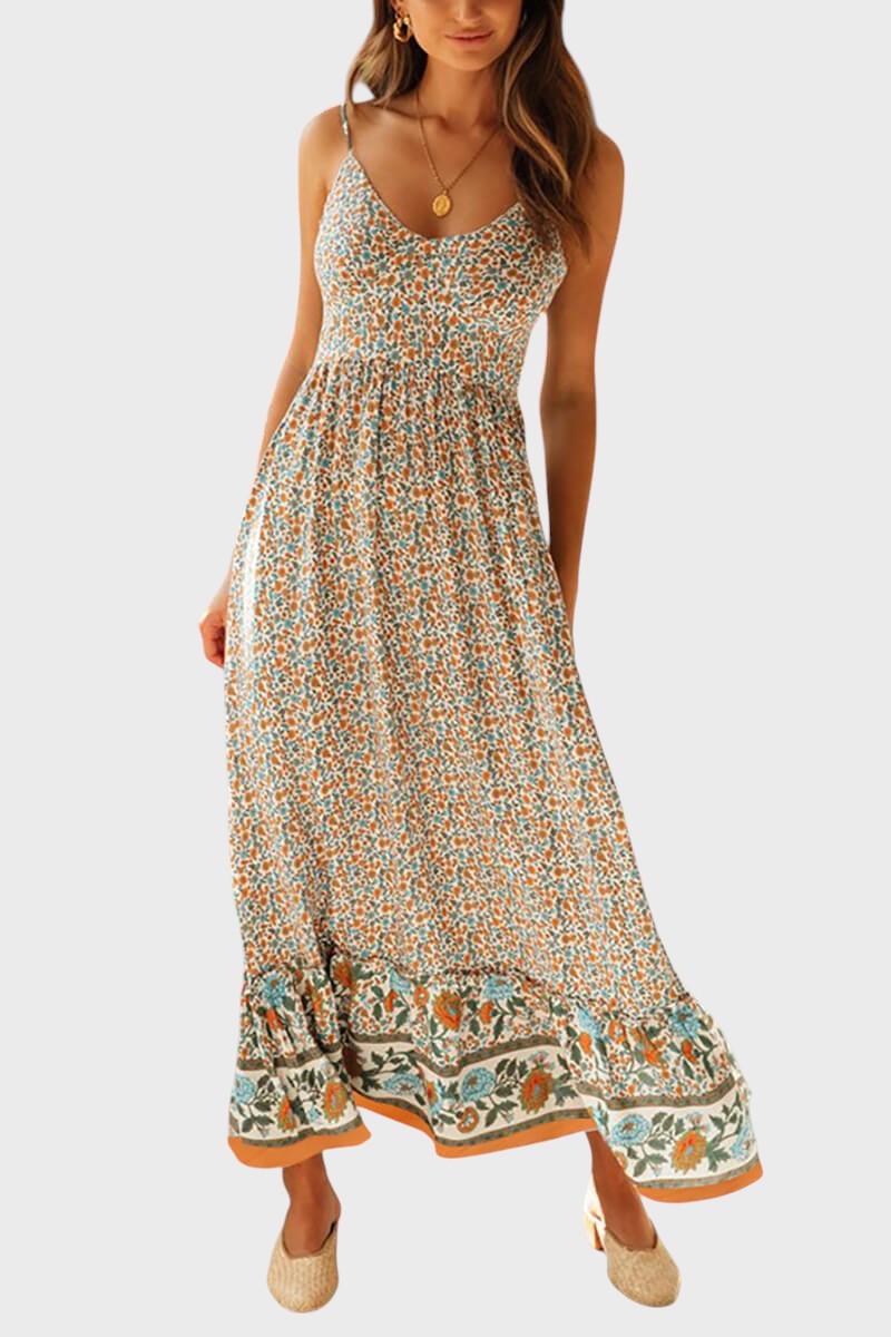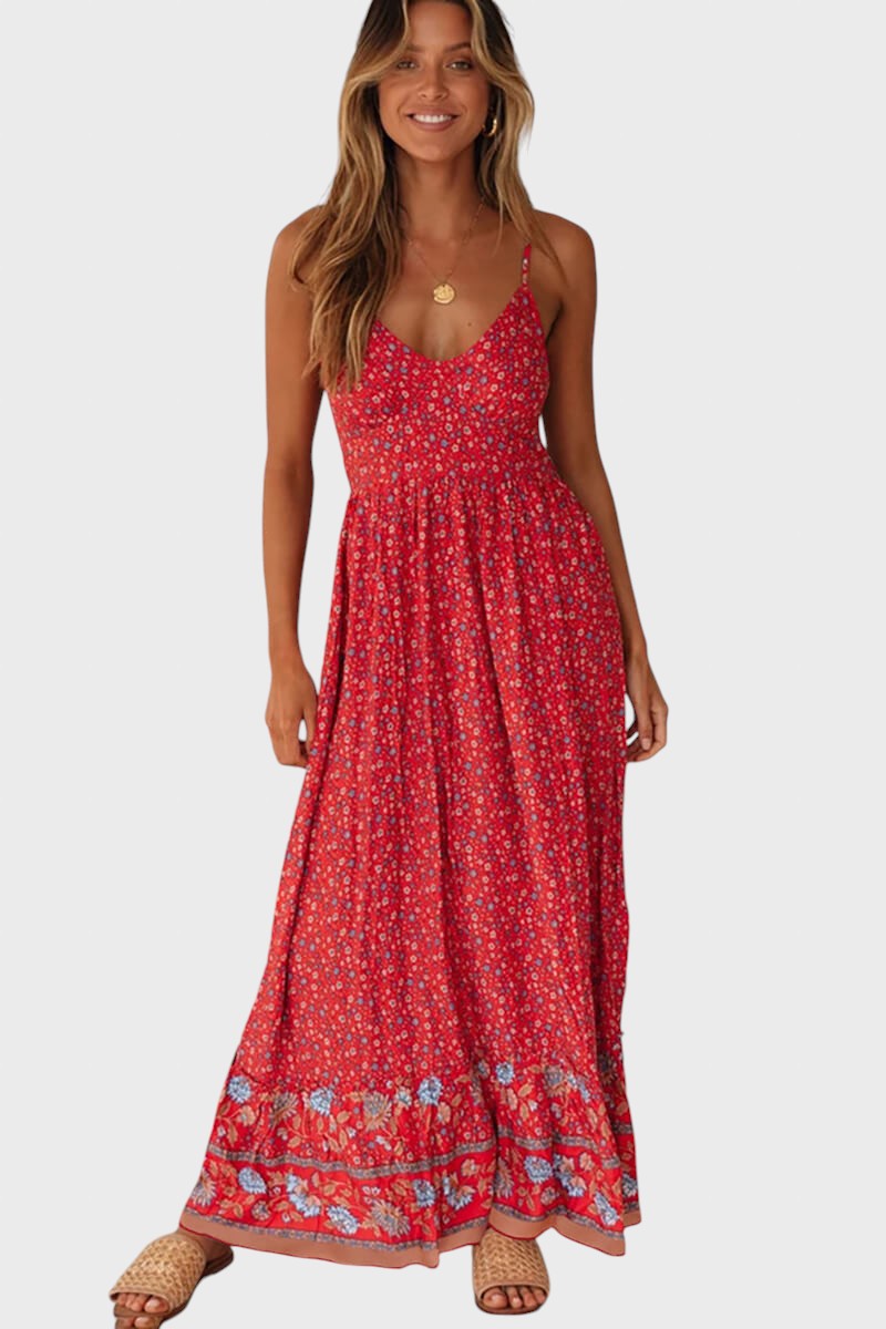 Kiriaki™ - Макси рокля на цветя с тънки презрамки