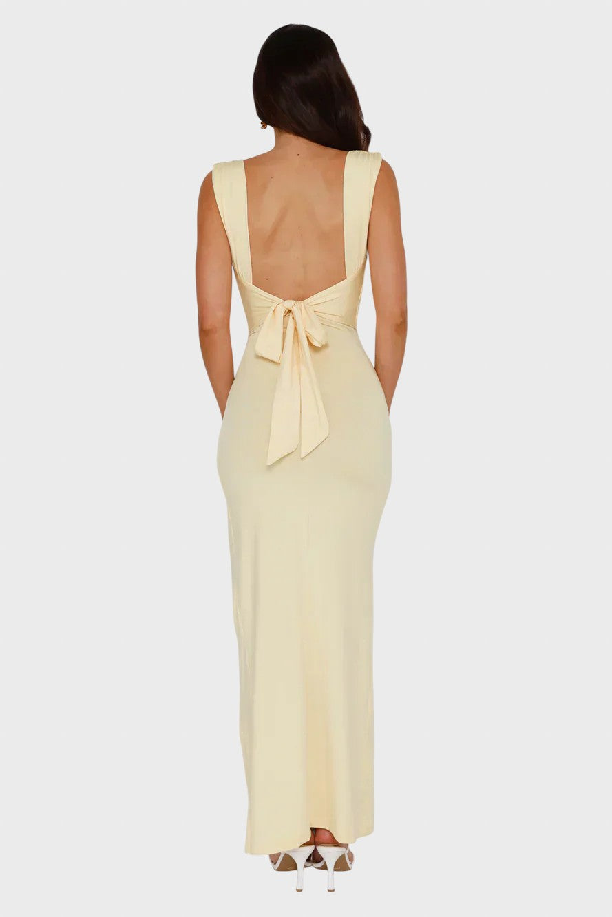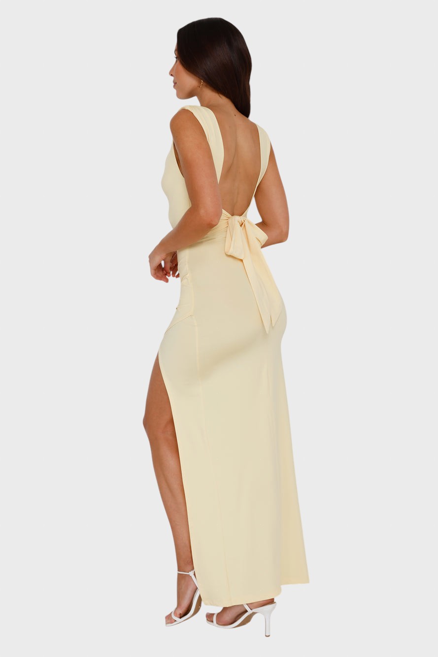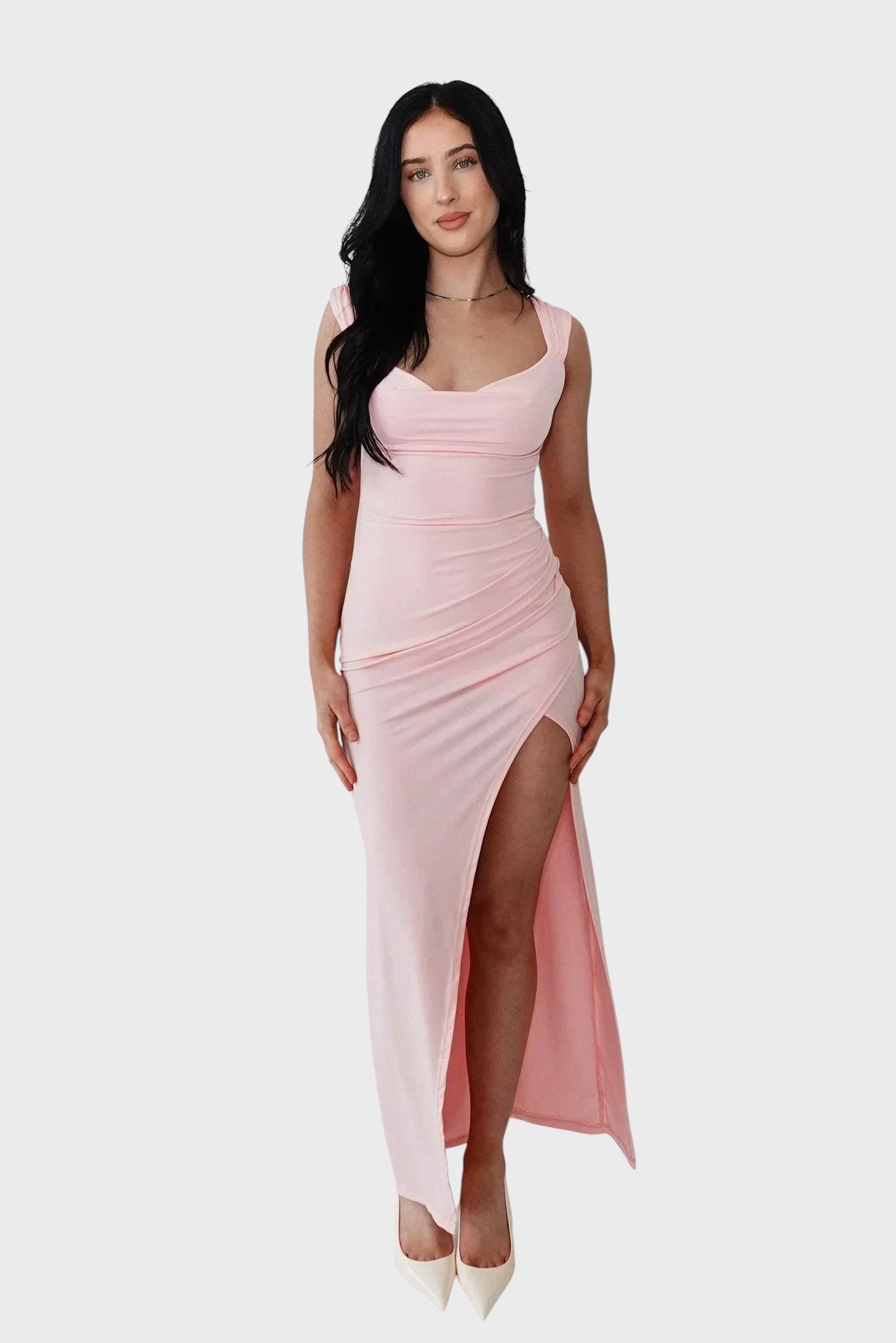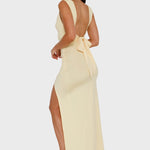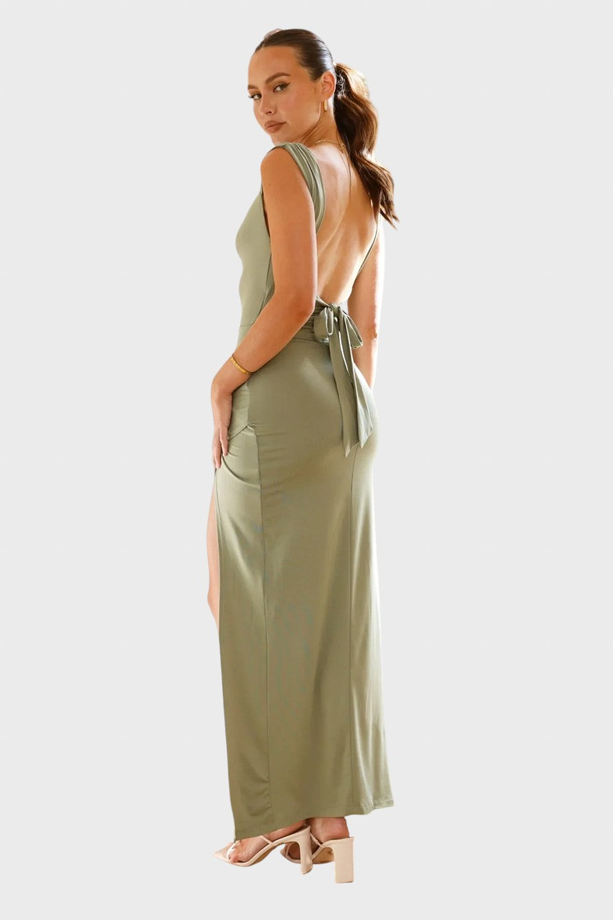 Нека семпла елегантност срещне съблазнителна увереност с тази зашеметяваща рокля. Тази дреха е олицетворение на минималистичен шик , идеална за тези, които търсят визия , излъчваща непринудена изтънченост и блясък, идеална за сватби или важни вечери. Добавете аура на изтънченост и модерност към гардероба си.