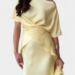 Свеж, женствен и изпълнен с летен чар, комплектът Сара подчертава силуета с тесния си топ с прекръстени презрамки и леката пола. Широкото деколте позволява носене на раменете за романтичен акцент, докато еластичният колан осигурява комфорт без загуба на стил.