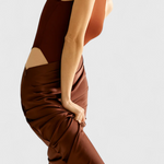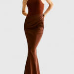 Рафиниран минимализъм за дълготраен ефект. Роклята Леона има дизайн с презрамки в стил тънък топ и издължена силуета, която ласкаво подчертава фигурата с дискретна елегантност. Нейната гладка и полиран завършек я прави универсално облекло за всякакви поводи, от ден до нощ.