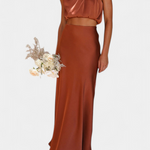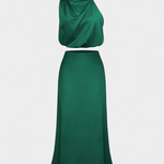 Ярка и запомняща се, тази комбинация от пола е проектирана да се откроява с драпирания си топ с халтер изрез, деликатни детайли и силует, който елегантно се движи. Осигурява леко и изискано усещане, което прекрасно се движи с теб.