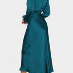 Женска, елегантна и с изтънчен стил, роклята Мария комбинира флуидна макси силуета с структурирана висока яка и пола с цветни детайли. Нейният дизайн е идеален за тези, които искат да подчертаятSophisticated в специални поводи, без да се отказват от комфорта.