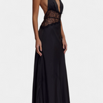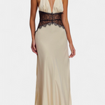 Дизайн, който излъчва изискана сексуалност и сложна елегантност. Мартина комбинира дълбок халтер изрез с деликатна чипкова лента на талията, създавайки перфектен контраст между субтилното и смелото. Течната материя обгръща тялото с грация, докато напълно откритите гърба добавят неочакван и смел обрат.